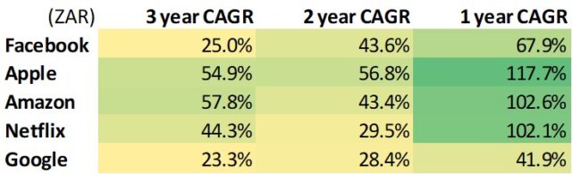 For comparative purposes, take a look at FAANG returns in ZAR over the last 3 years: