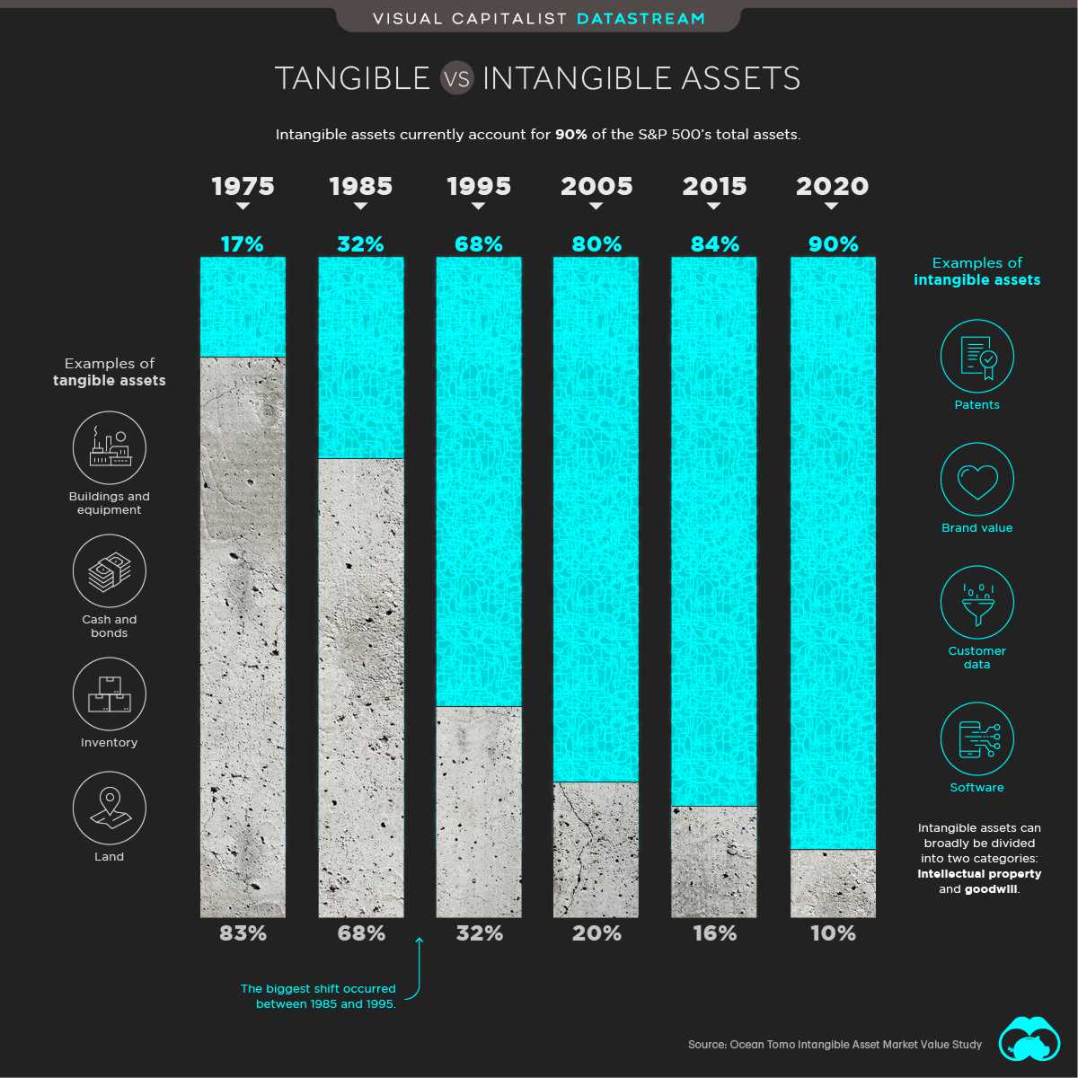 This means that for every $1 of physical assets held by S&P 500 companies, a further $9 of intangible assets exists.